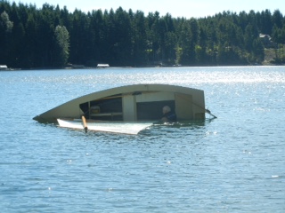 Gerry recently sent me three images showing the results of a capsize test he carried out, and Im happy to see that the built-in buoyancy worked as I had hoped:-